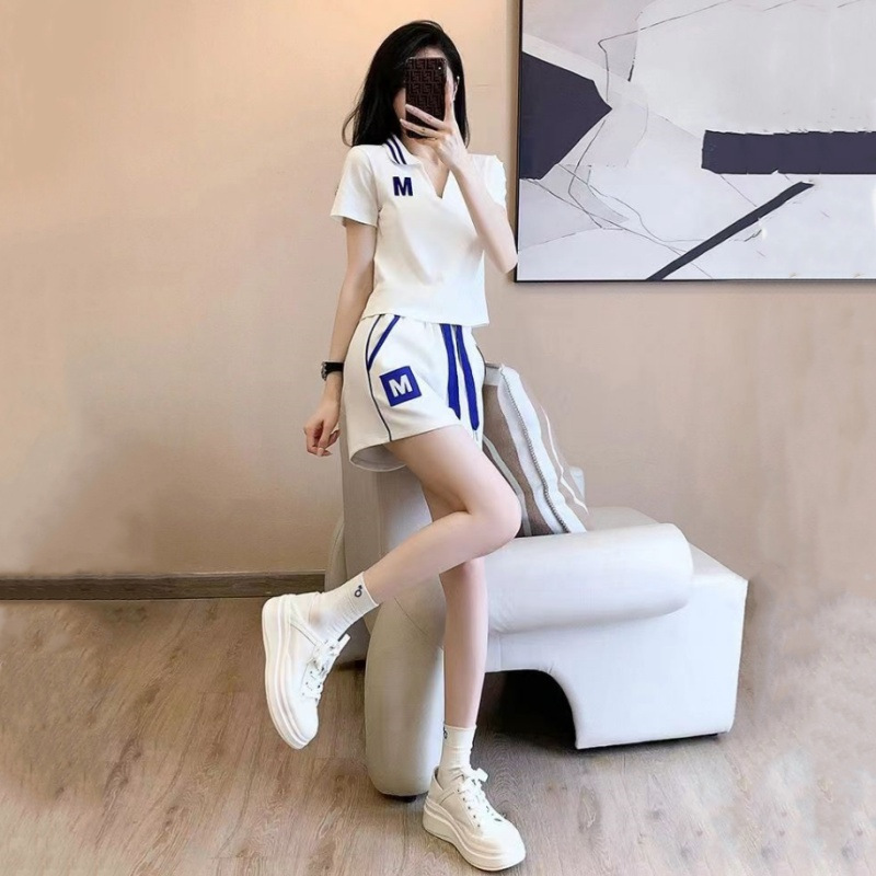 Setelan olahraga kasual wanita musim panas siswa gaya Korea longgar T-shirt lengan pendek celana fifth fashion berjalan setelan dua potong mode