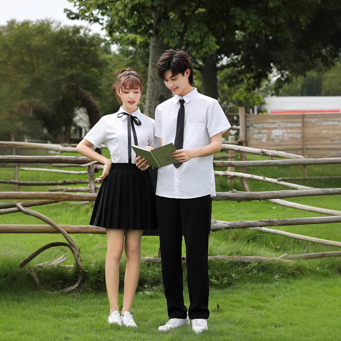 Setelan seragam sekolah gaya kuliah Korea, pakaian siswa sekolah dasar dan sekunder kemeja Jepang siswa sekolah menengah, foto wisuda pakaian kelas musim panas