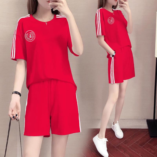 Setelan Olahraga Kasual Ukuran Besar Wanita Gemuk Lintas Batas Model Baru Musim Panas Celana Pendek Lengan Pendek Pelajar Longgar Setelan Dua Potong