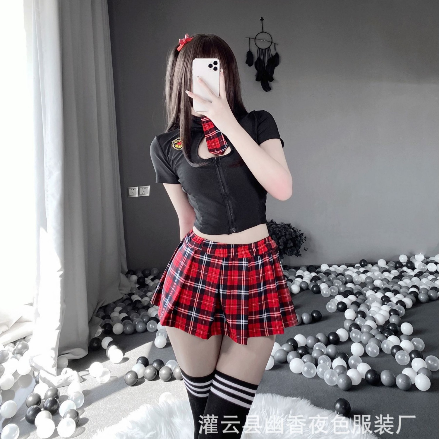 Lingerie seksi siswa seksi jk seragam rok lipit menggoda rok pendek gaya kuliah kotak-kotak piyama menawan panas wanita