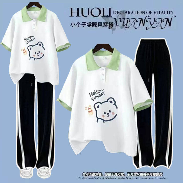 Setelan olahraga musim panas anak perempuan 2024 gaya baru, setelan dua potong polo + celana lebar, gaya Jepang yang energik
