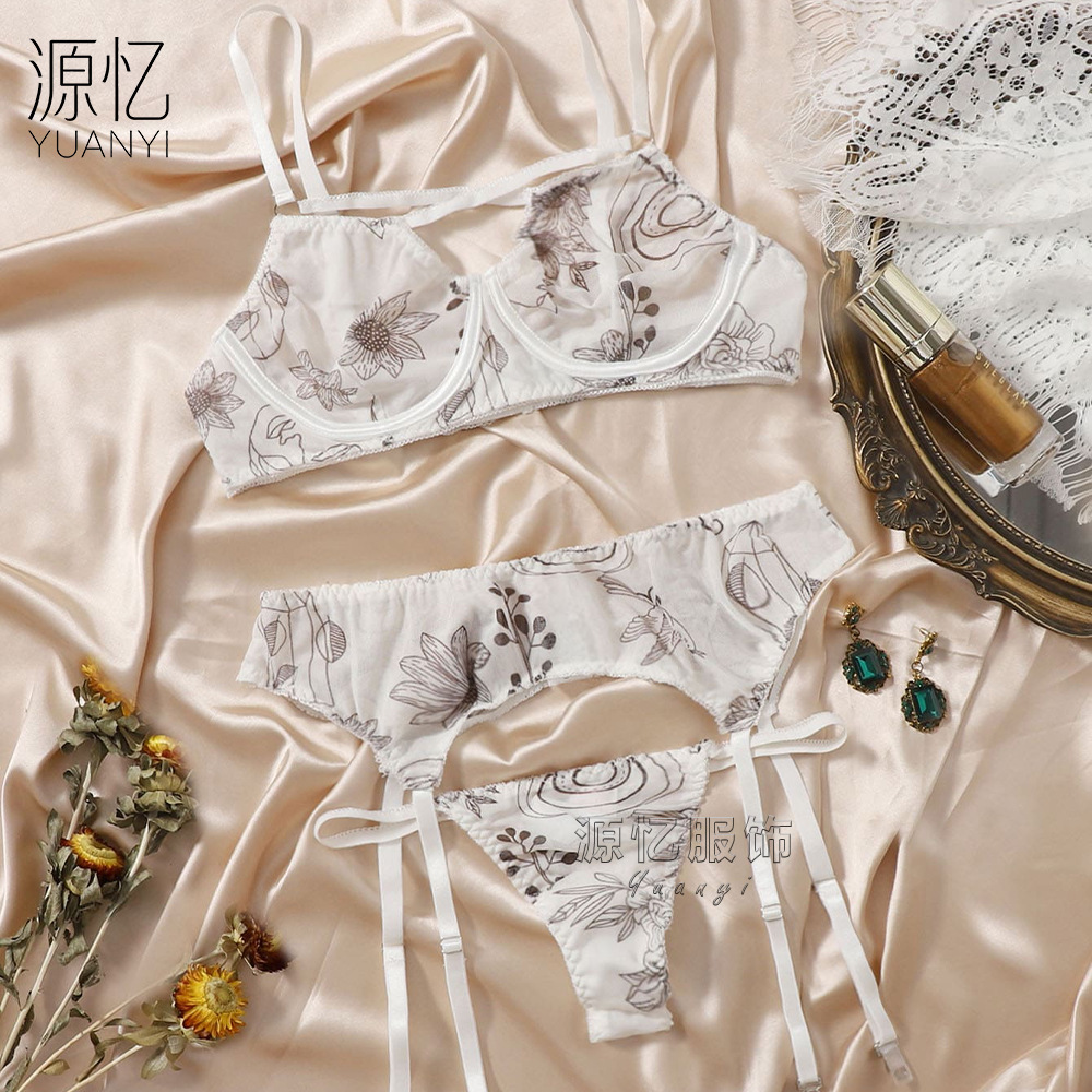 Setelan lingerie seksi perdagangan luar negeri kaus kaki sling jaring motif seragam seksi set tiga potong lingerie stasiun independen