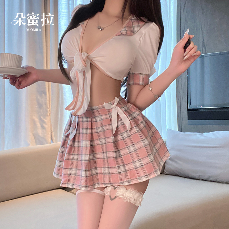 Domi La Pakaian Dalam Seksi Seksi Seragam Godaan Pakaian Sekolah Kotak-Kotak Petak Murni dan Lucu