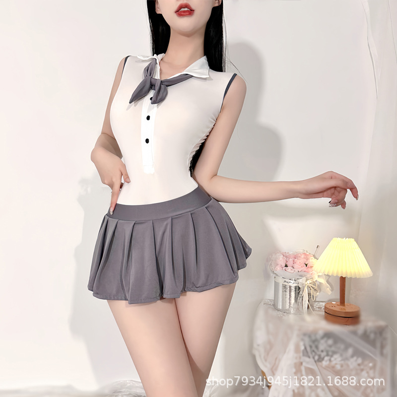 Pakaian dalam lingerie seksi kampus lucu selangkangan terbuka jumpsuit jk baju kuliah pakaian senam baju tidur wanita seragam godaan
