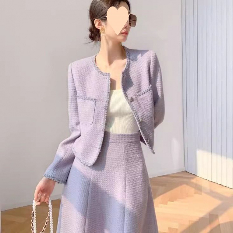Setelan Pakaian Wanita Gaya Chanel Dimasak Ringan Kelas Atas Retro Mewah Ringan Set Dua Potong Sosialita Elegan Prancis Musim Semi dan Musim Gugur Baru 2024