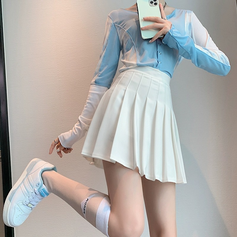 Rok Lipit JK Pria Kecil Gaya Korea Rok Setengah Badan Kasual Rok Pendek Pinggang Tinggi Gadis Lembut Mudah Dipadu Padan Anti-Walking Terlihat Langsing Warna Polos