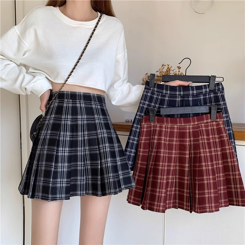 (Kirim Sabuk) Rok Lipit Motif Kotak Retro Rok JK Rok Setengah Badan Musim Semi Musim Panas Gadis Pedas Gaya Amerika Rok Pendek Kotak-Kotak Musim Gugur