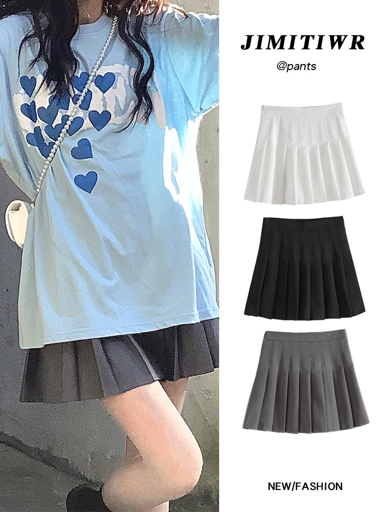 JK rok lipit gaya Korea wanita, rok a-line kecil pelangsing pinggang tinggi, gaya preppy 2024 musim semi dan musim panas