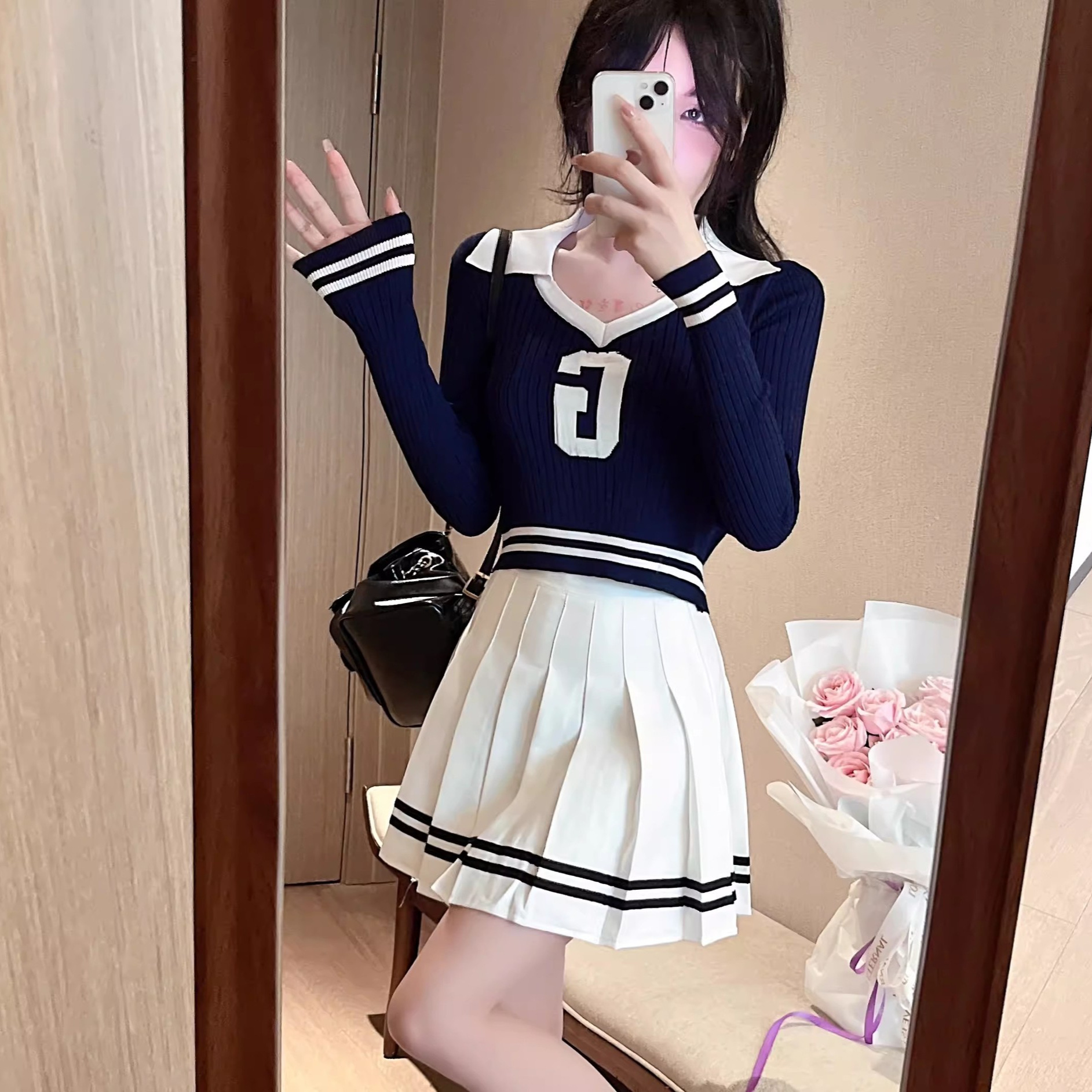 Kardigan Sweater Setelan JK Saus Beili Kardigan Asli Asli Rok Lipit Setengah Tubuh Setelan Musim Gugur dan Musim Dingin Gaya Kampus Wanita