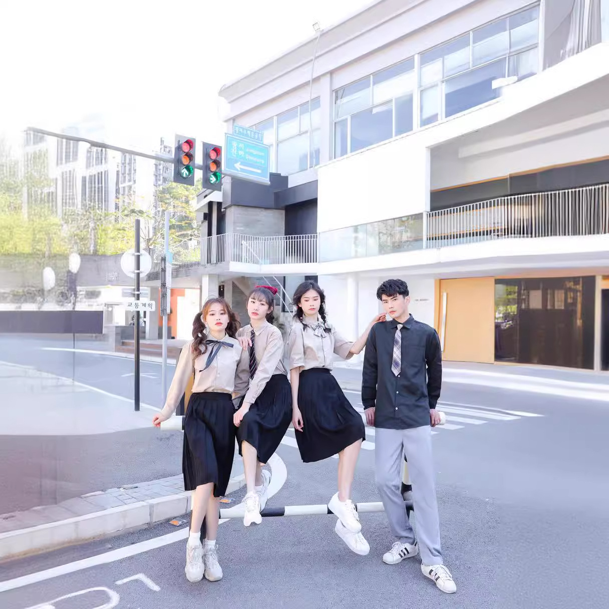 Kaus lengan pendek JK seragam, rok kemeja Gaun rok lipit musim panas dua potong kasual