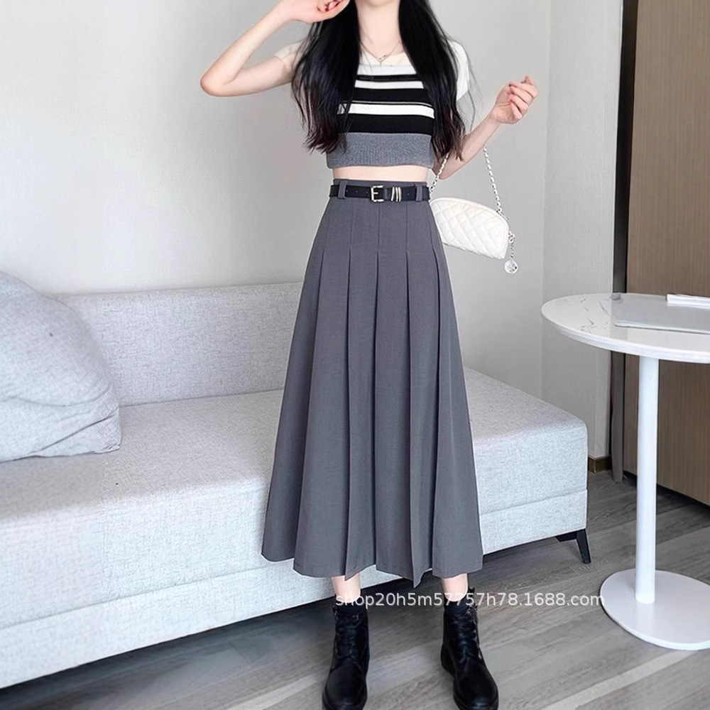 Rok Lipit Setelan Abu-abu Rok Setengah Badan A-line Terlihat Langsing Pinggang Tinggi Model Baru Musim Gugur dan Musim Dingin 2025 Rok Pinggul Mudah Dipadu Padan Model Setengah Panjang