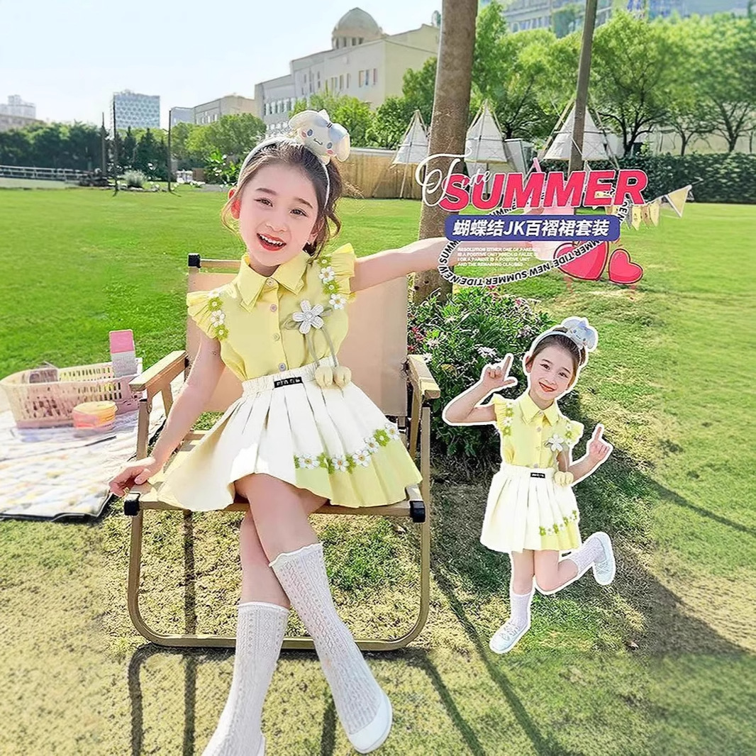 女童夏季新款儿童装洋气短袖夏装小女孩衬衫宝宝百褶裙两件套6731
