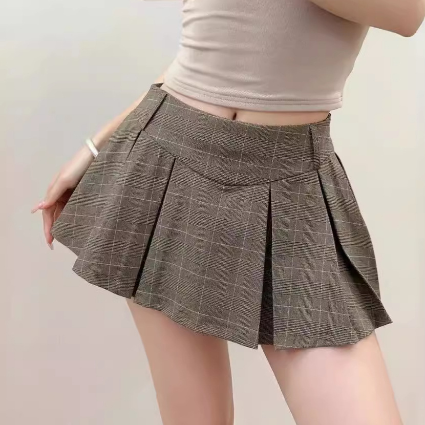 Rok lipit model Korea pinggang tinggi, Rok lipit model Korea pinggang tinggi, rok a-line musim semi/musim panas jk, rok kotak-kotak ukuran plus musim gugur/musim dingin 20223