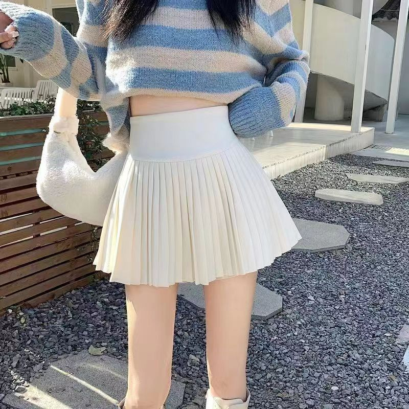 Rok Lipit Pinggang Tinggi Model Baru Rok Setengah Badan Anti Terang Rok Pendek Lapisan Dalam Gaya Kampus Rok A-Line Celana Wanita Rok Pendek Gadis Pedas JK