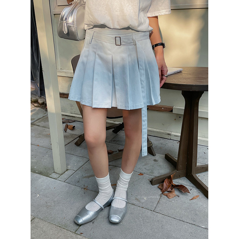 Rok seragam JK seksi wanita, rok pendek Sabuk pengiriman, rok lipit anti paparan, Musim Panas 2024
