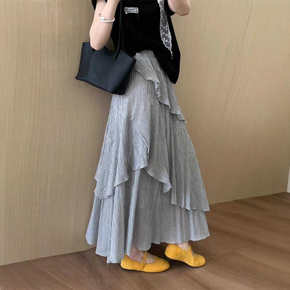 Rok Setengah Badan Tidak Teratur Retro Prancis Rok Kue A-Line Mengurangi Usia Mudah Dipadu Padan Modis Gaya Senior Musim Panas Wanita Rok Panjang Sedang