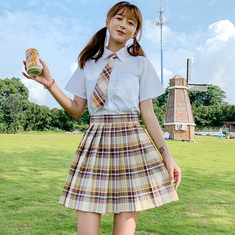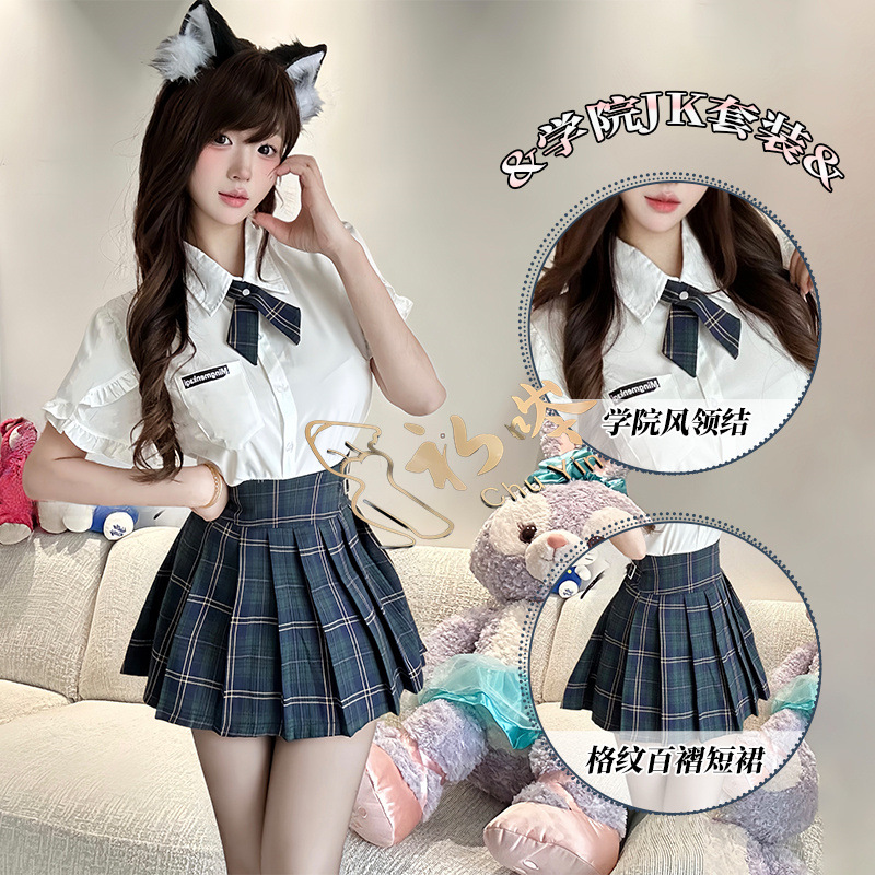 Pakaian Dalam Erotis Pakaian Pelajar Setelan Seragam Seksi Gaya Kampus JK Rok Lipit Berpola Gaya Gadis Kemeja Berenda