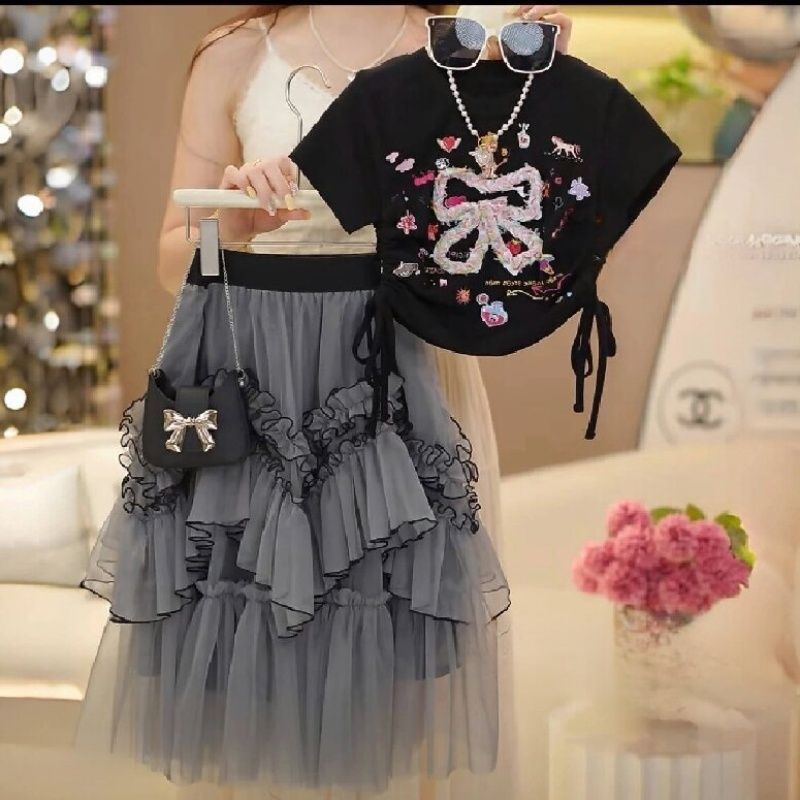 品质原创大量现货2025新女童洋气印花可爱短袖套装韩版短袖裙夏装