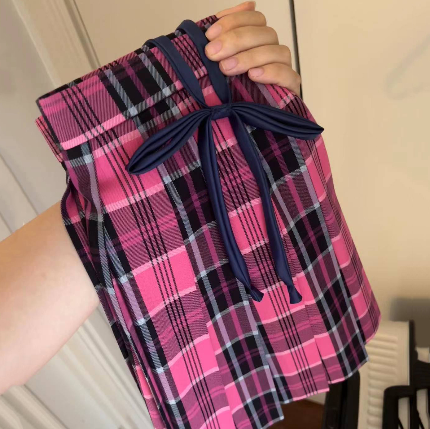 Rok kotak-kotak gaya gunung, rok seragam JK gaya kuliah Jepang, Rok lipit kotak-kotak anak perempuan lengan pendek olahraga e-cream