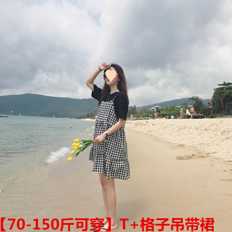 Satu Potong/Set Rok Tali Kotak-kotak Opsional Dua Potong Gaun Longgar Sederhana dan Elegan Versi Korea Siswa Wanita Musim Panas