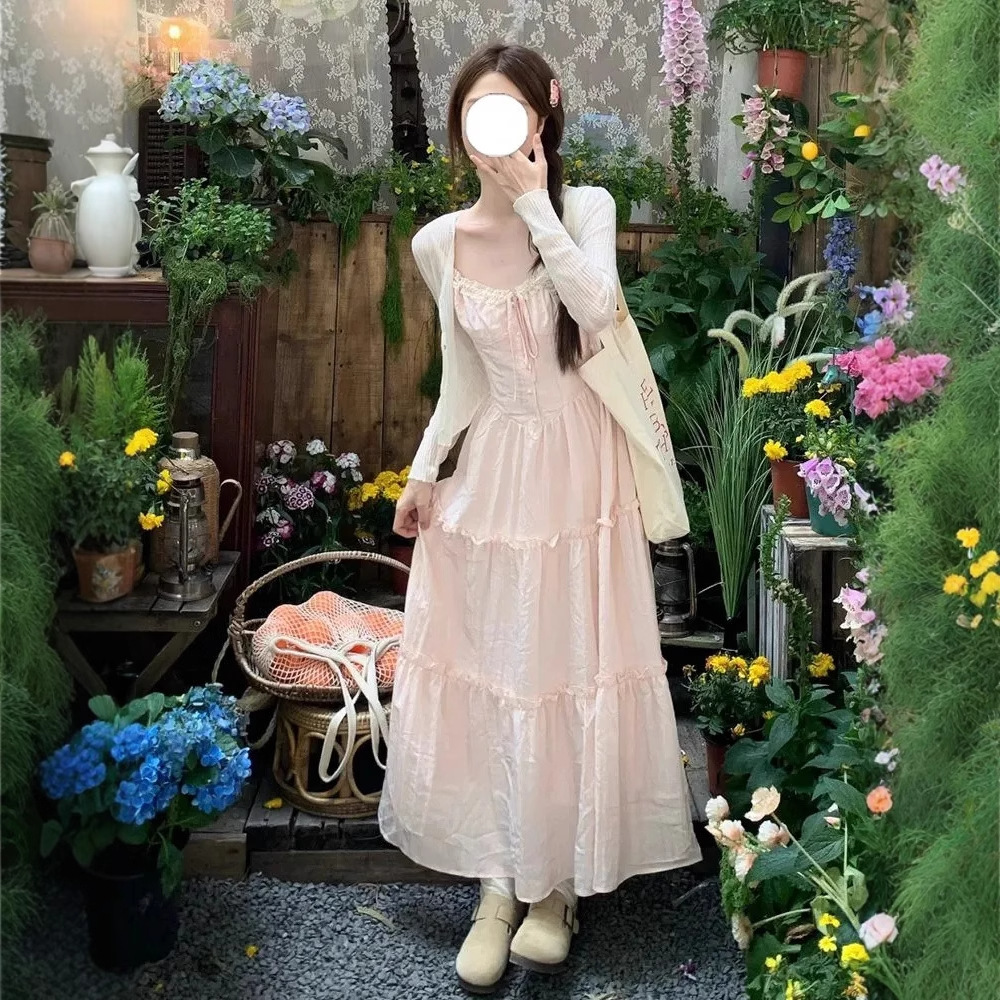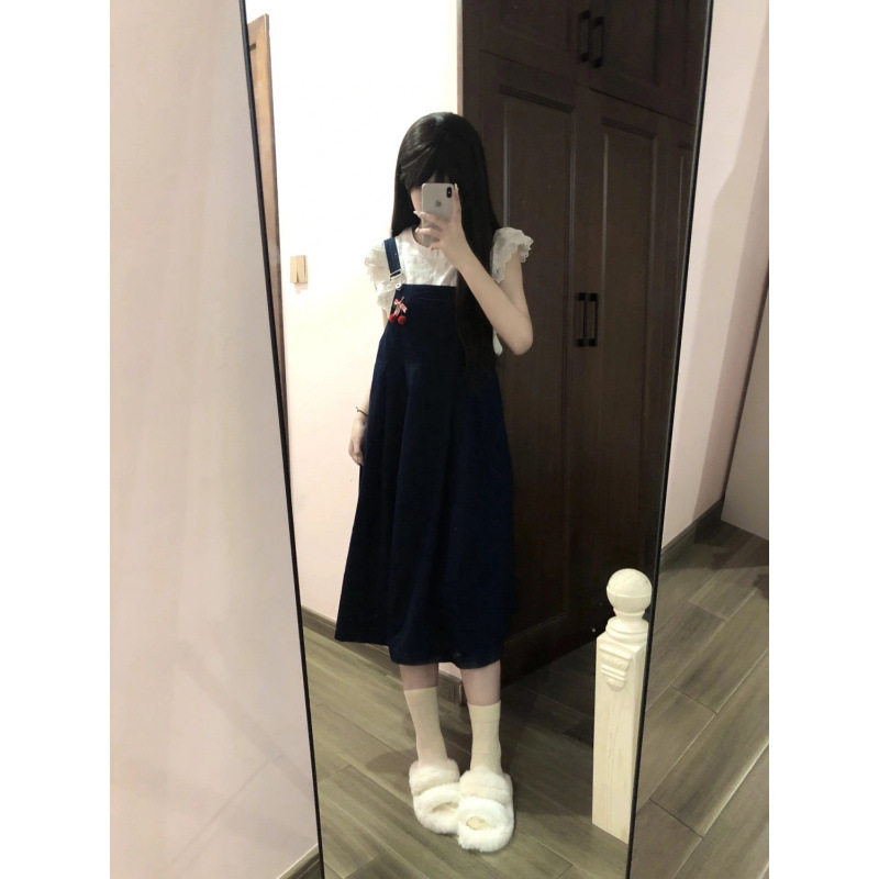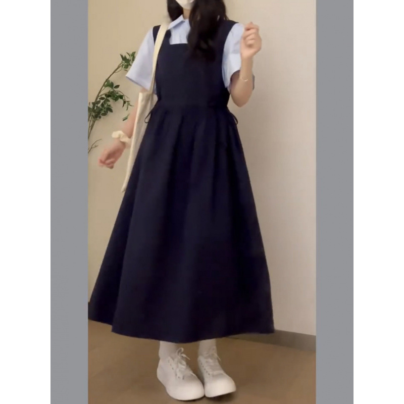 Set Tunggal Gaun Tali Selempang Gaya Kampus Rok Tali Selempang Di Bawah Lutut Mudah Dipadu Padan Model Panjang Sedang Longgar Gaya Korea Siswa Perempuan