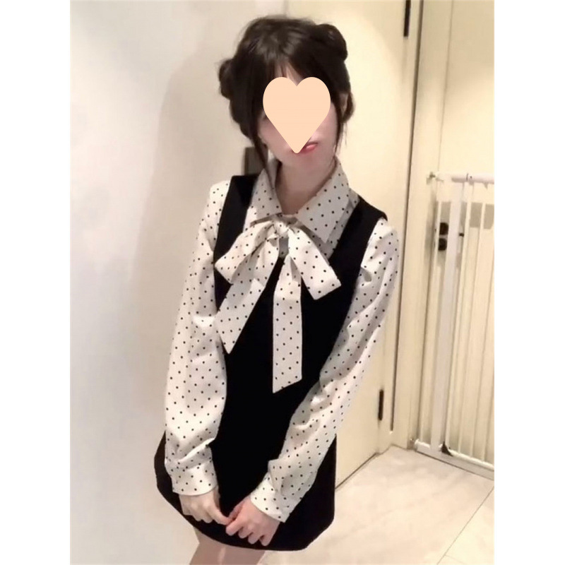 Gaun Tali Punggung Terlihat Langsing Bordir Tubuh Kecil Manis Gaya Jepang Kemeja Poli Dot Pita Kupu-Kupu Siswa Wanita Setelan Dua Potong