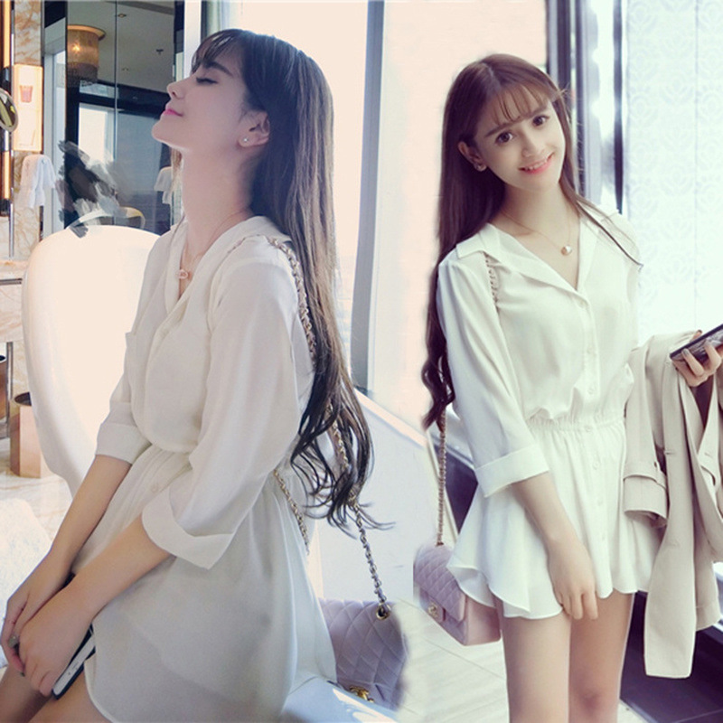 2025 Gaun Slim-fit Pakaian Wanita Rok Musim Panas Kemeja Terlihat Kurus Ramping Elegan Sifon Murid Sekolah Segar Rok Pendek A-Line