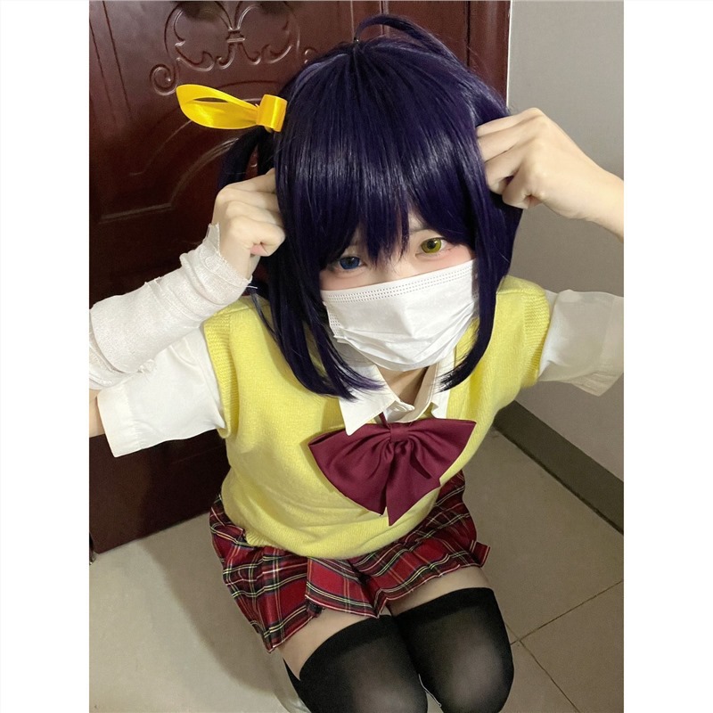 Setelan Gaya Sekolah Gadis Pedas Amerika Kemeja Warna Hitam Biru Seragam Polisi Kelinci JK Rok Lipit Rompi 3 Set
