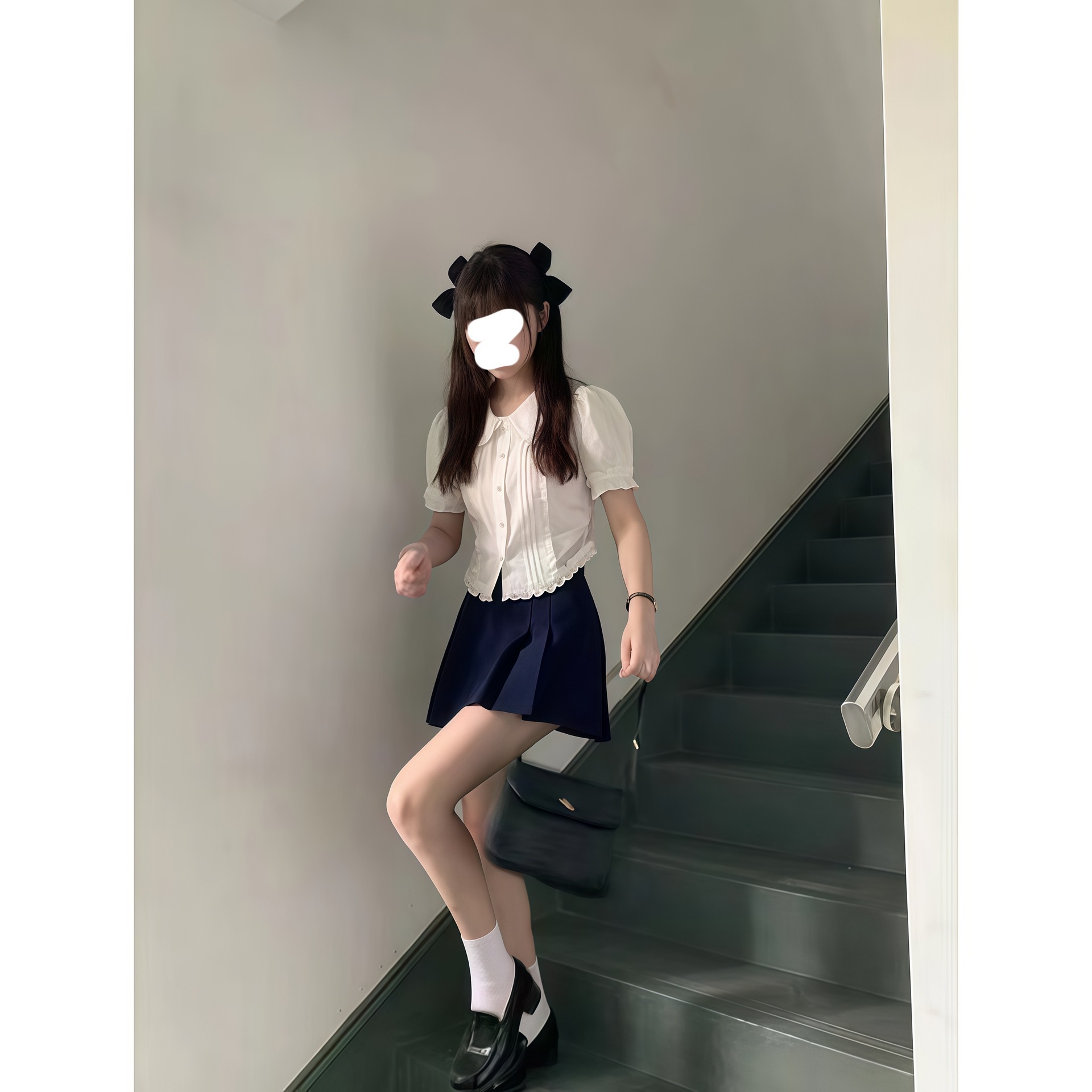Baju Atasan Lengan Pendek Pinggiran Jamur Gaya Kampus Model Baru Musim Panas 2025 Kemeja Manis Manis Wanita Rok Pendek JK Setelan Lintas Batas