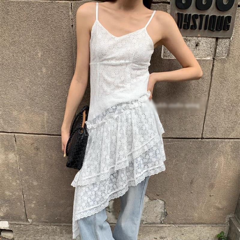 纯欲绝美超仙蕾丝拼接收腰高级感修身显瘦吊带连衣裙