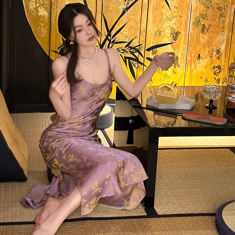 Gaun panjang wanita tiongkok, gaun gaya nasional baru leher U selempang panjang