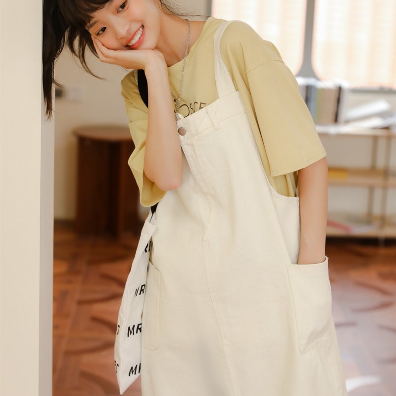 Gaun suspender manis kampus Jepang musim panas setelan satu potong rok suspender panjang menengah longgar gaya Korea pelajar wanita