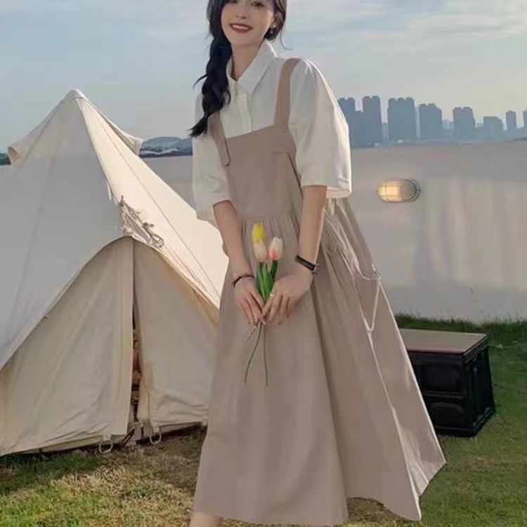 2024 gaya baru boneka telinga kayu kerah kemeja segar manis + gaun tali siswa serbaguna retro mode
