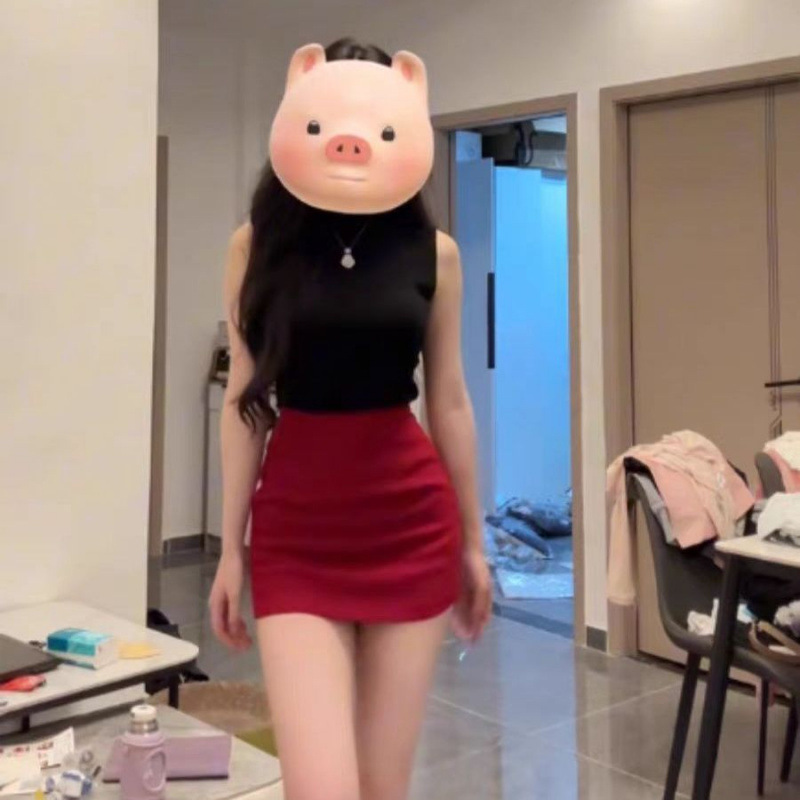 JK Spice Girl Atasan Tanpa Lengan Membentuk Tubuh Seksi Gaya Murni Gaya Hit Rok Membungkus Pinggul Elastis Manis dan Pedas Rok Mewah Ringan Sosialita Satu Set