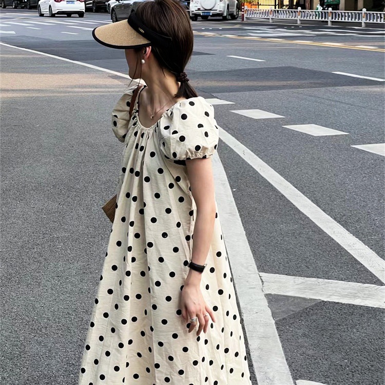 Gaun Mudah Dipadu Padan Kasual Mengurangi Dot Gelombang Gaya Desain Perancis Rok Panjang Terlihat Kurus Cantik Manis Kasual Pelajar