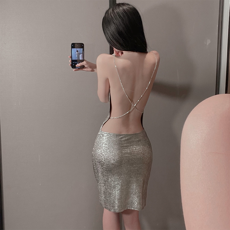 Pakaian Dalam Erotis Pakaian Piyama Wanita Rok Membungkus Pinggul Seksi Punggung Terbuka Sutra Es Elastis Tinggi Pakaian Ketat Menggoda Set Gaun Gantung
