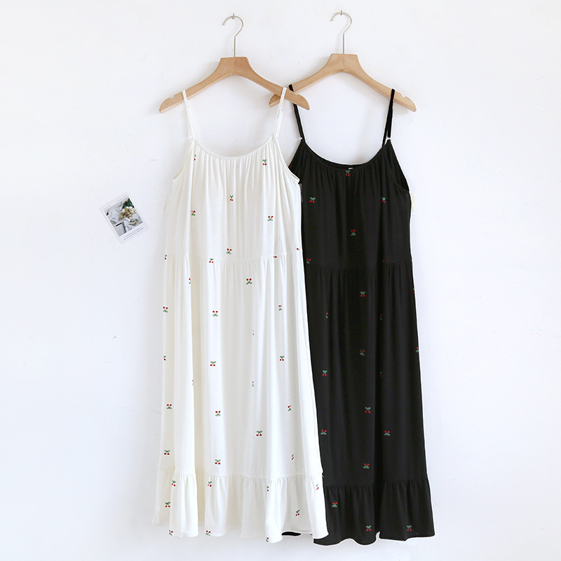 Musim Panas Wanita Model Tipis Modal dengan Bantalan Dada Rok Suspender Pakaian Rumah Ceri Manis Bisa Dipakai Luar Murid