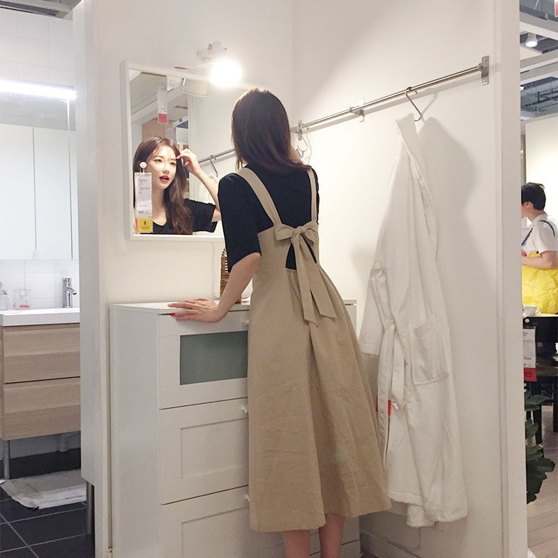 Gaun tali wanita, baju tali retro murid backless slim-fit gaya Korea musim semi dan musim panas 2024