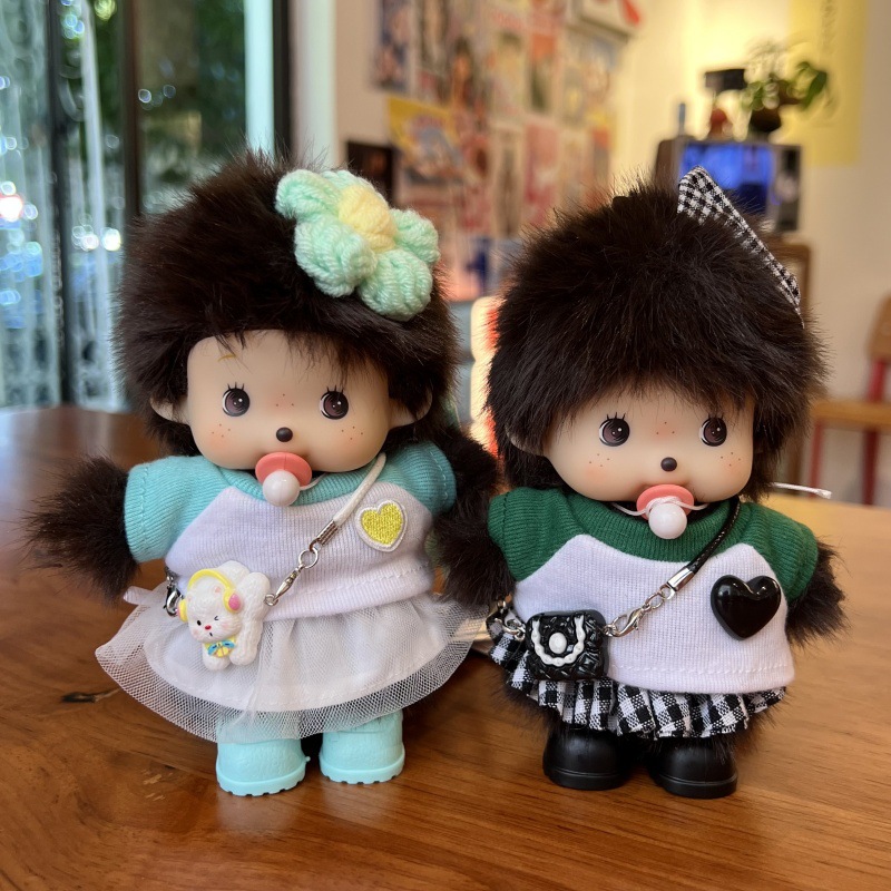 蒙奇奇正版钥匙扣双拼T恤装扮毛绒公仔布艺玩偶包包挂件书包装饰