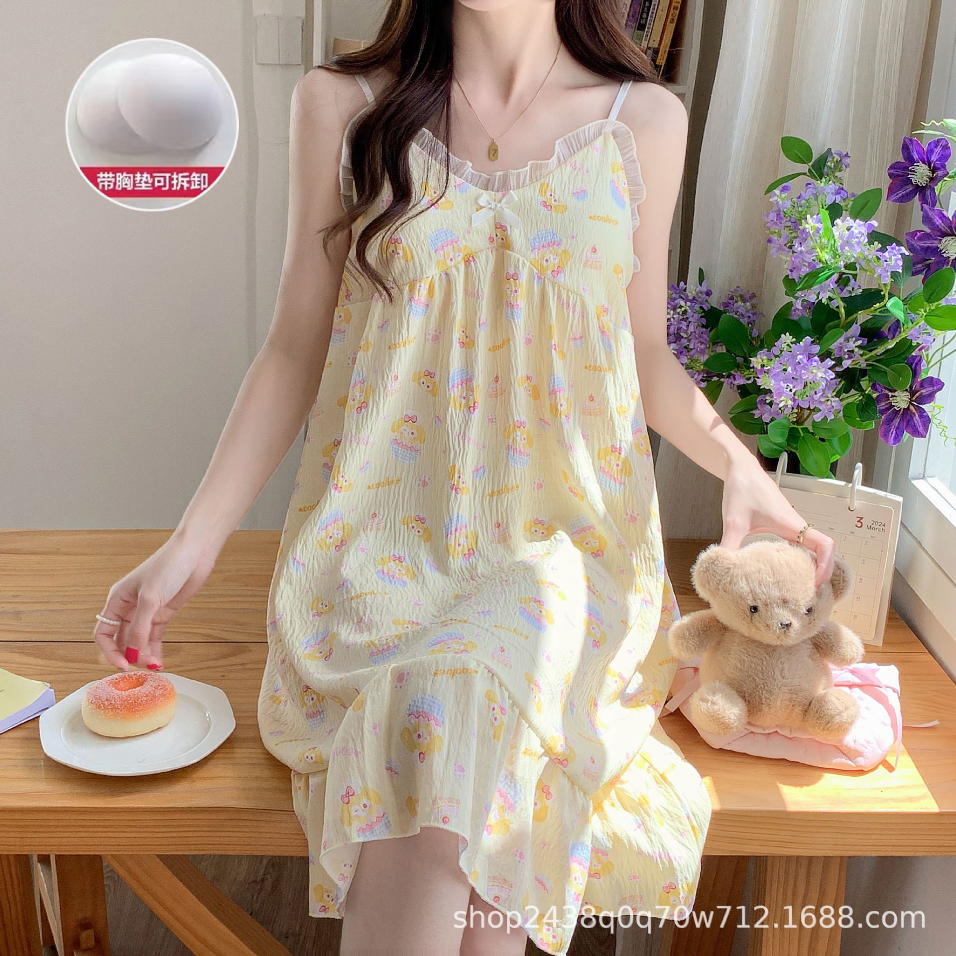 Gaun malam tanpa lengan wanita, musim panas katun tipis rompi kamisol mahasiswa lucu piyama ukuran besar pakaian wanita gaun