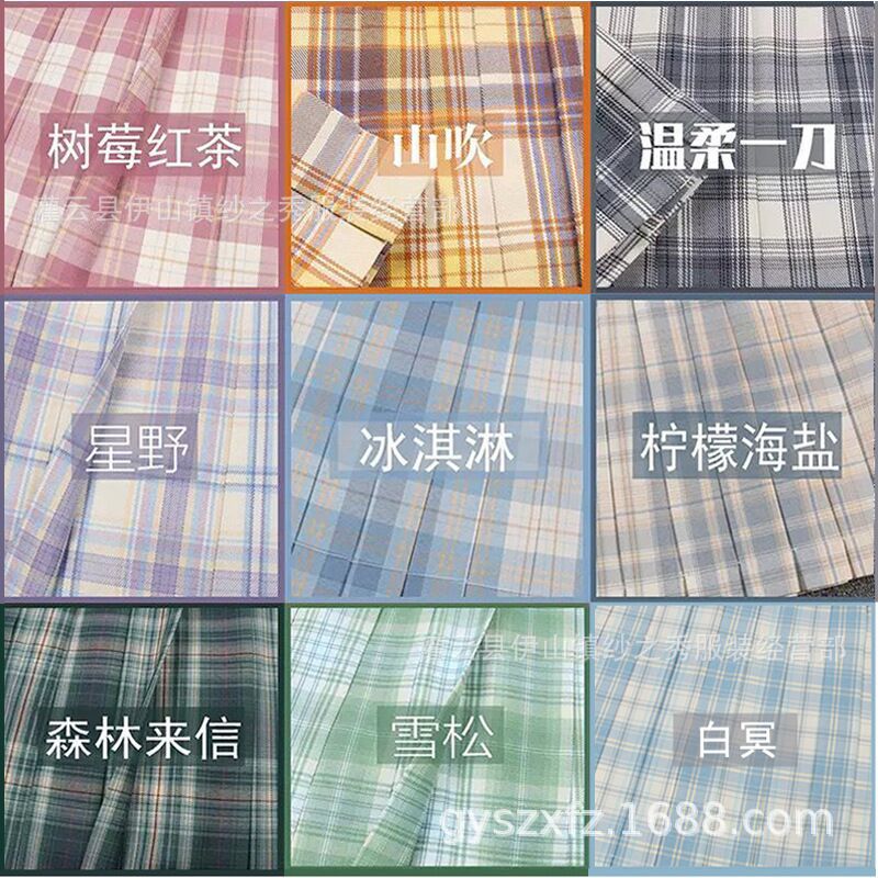 JK rok lipit model seragam untuk wanita, Rok lipit sekolah gaya kuliah musim panas, rok kotak-kotak pelajar perempuan