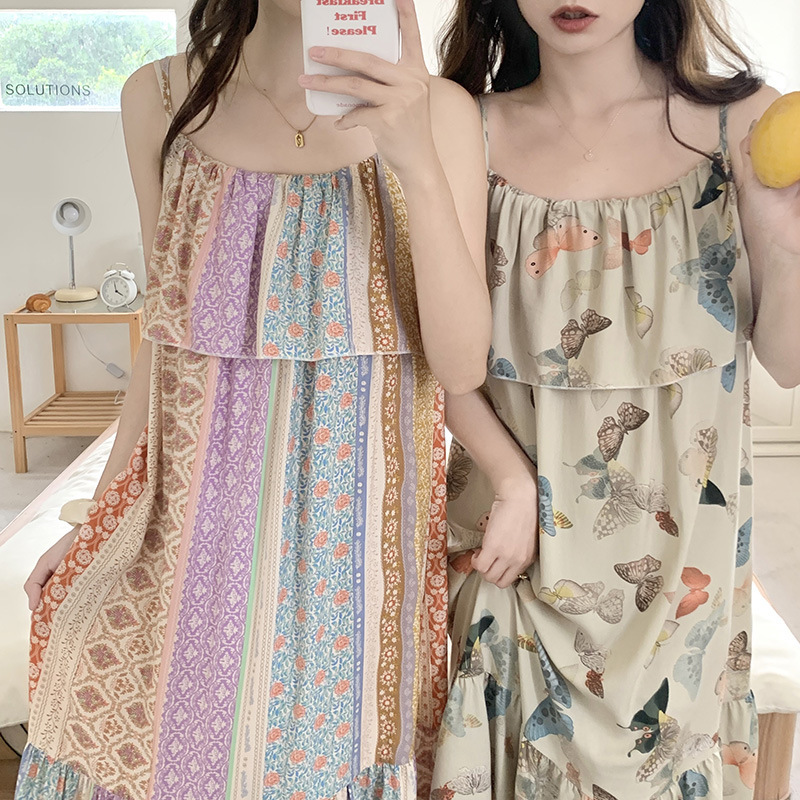 Gaun malam Anti tabrakan, baju tidur wanita musim panas kelas atas, piyama sutra katun, pakaian rumah baru, gaun sutra katun tali anak perempuan kecil