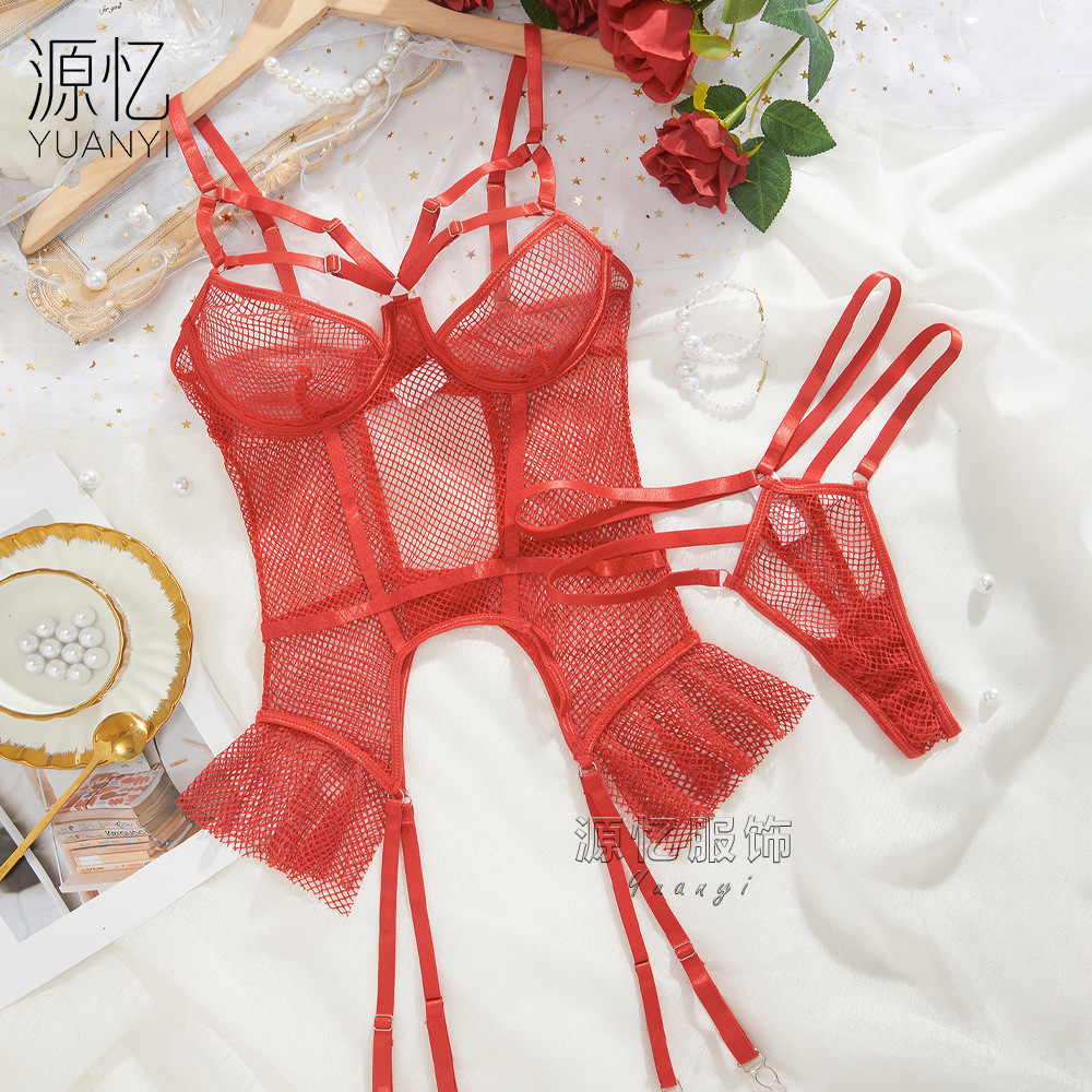 Seragam lingerie seksi lintas batas keinginan murni seksi setelan jaring berongga kaus kaki selempang rempel Eropa dan Amerika qqny baru