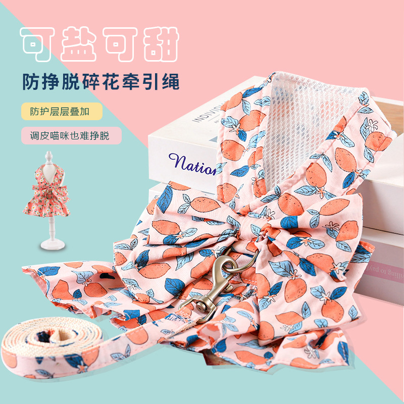 Rok tipis anjing dengan tali traksi gaun belakang dada gaun putri selebriti Internet pakaian kucing hewan peliharaan beruang teddy musim panas