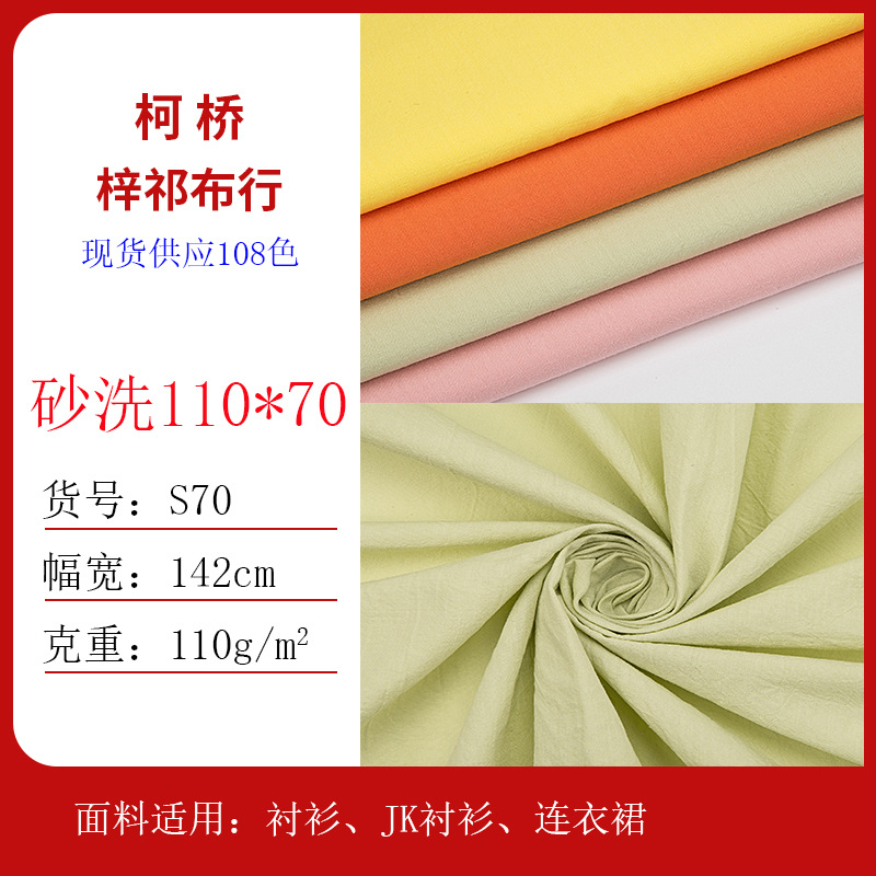 Katun 40s plain poplin 110*70 pasir dicuci kemeja crepe segar gaun kemeja mantel