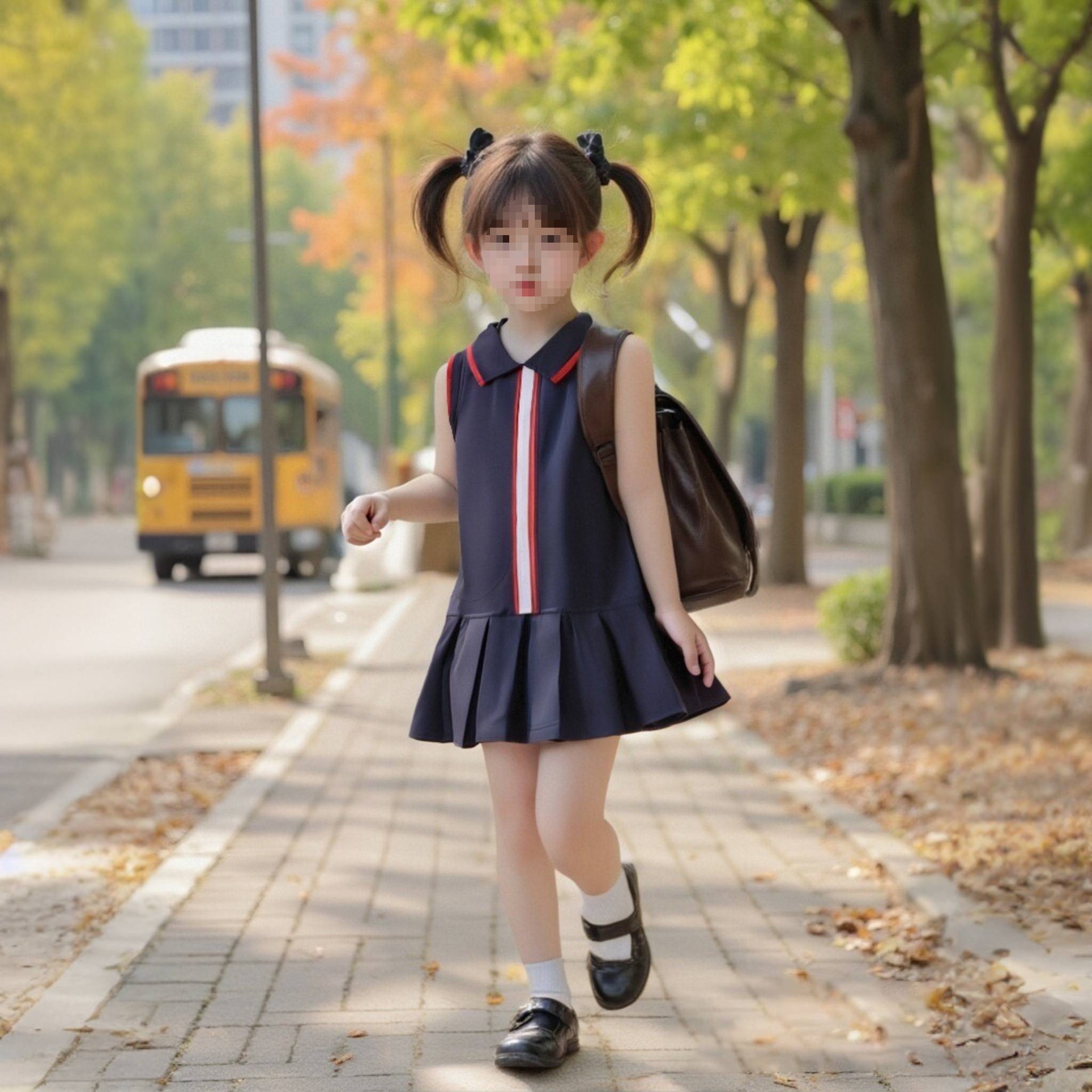 Gaun Olahraga Tenis Terlihat Langsing Gaya Kampus Kerah Baling Warna Solid Bayi Model Baru Musim Panas 2025 Rok Lipit Anak Perempuan