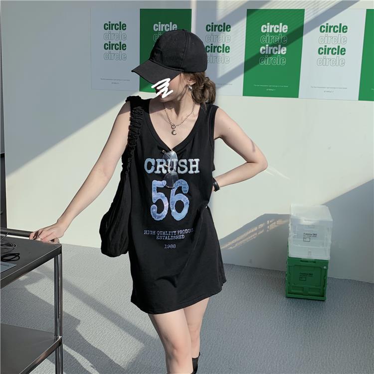Kaus rompi tanpa lengan musim panas baju tidur tali gaun malam wanita longgar siswa pakaian luar seksi pakaian rumah T-shirt piyama setengah panjang