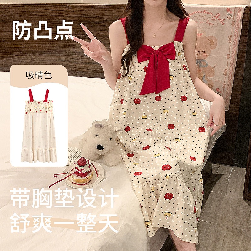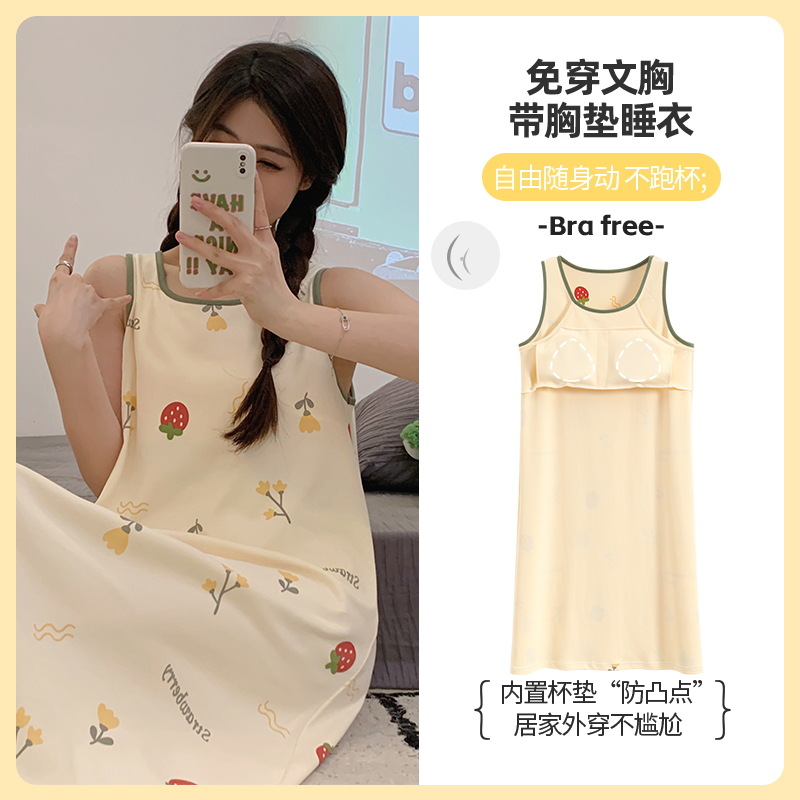 Gaun malam rompi katun wanita, dengan bantalan dada piyama gaya baru musim panas siswa perempuan tanpa lengan rok manis pakaian luar pakaian rumah