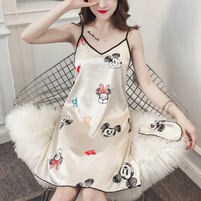 [Koleksi 1750 Orang] Gaun Tidur Wanita Musim Panas Sutra Es Gaya Korea Lucu Siswa Gaun Tidur Seksi Musim Panas Model Tipis