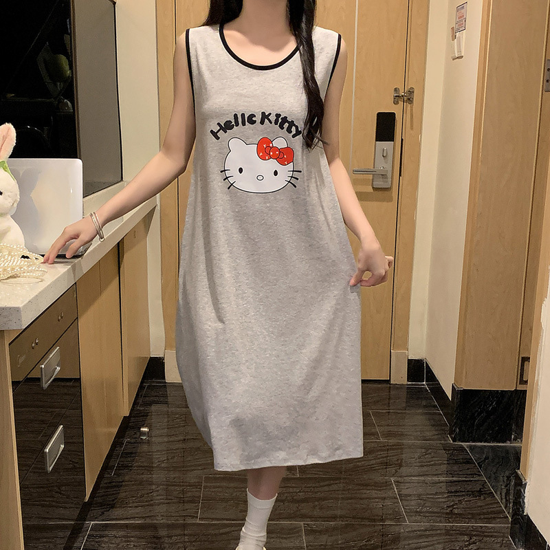 Rompi Tanpa Lengan Katun Manis Gadis Musim Panas T-Shirt Baju Tidur Pelajar Pakaian Rumah Kartun Korea Instagram Gaun Tidur